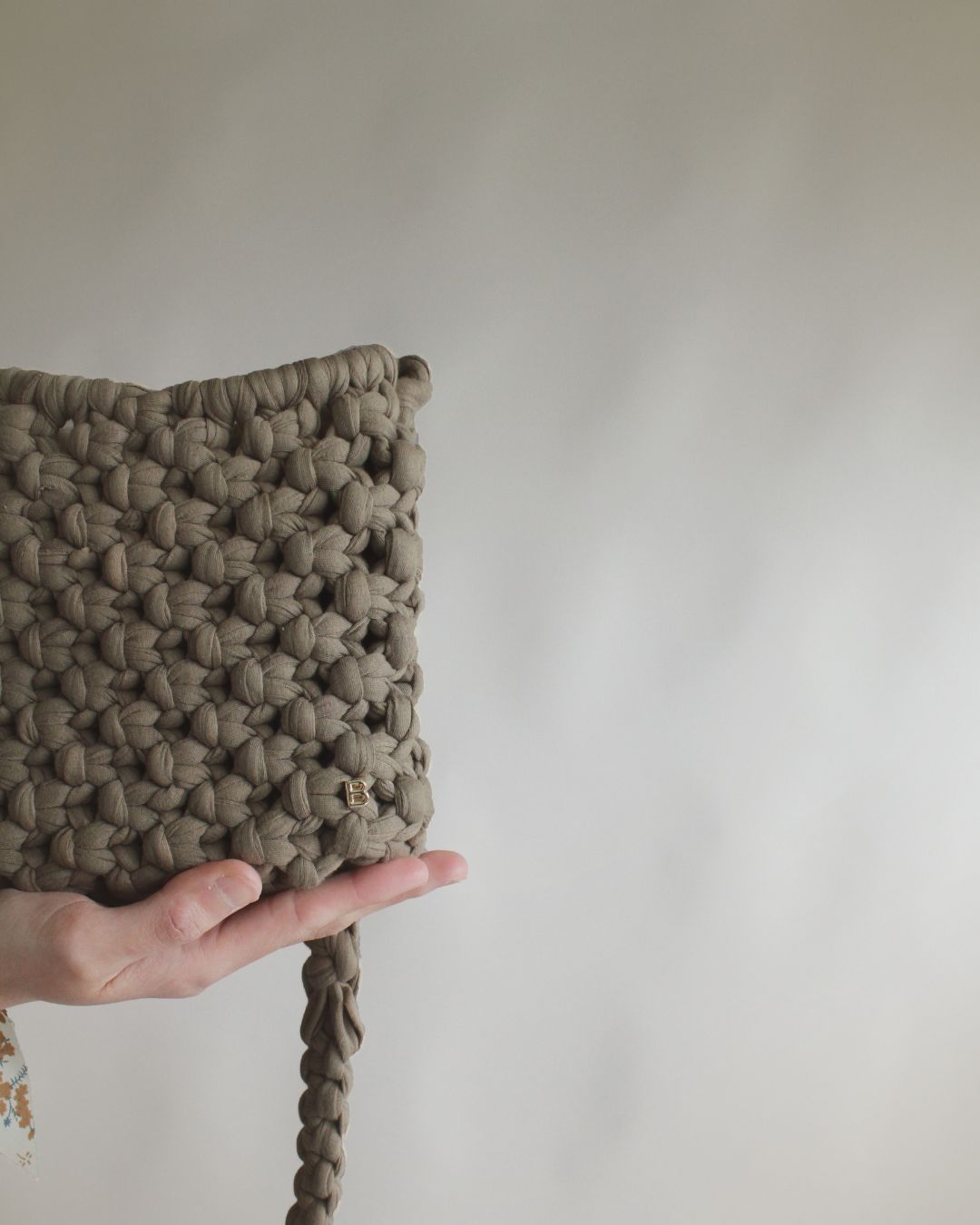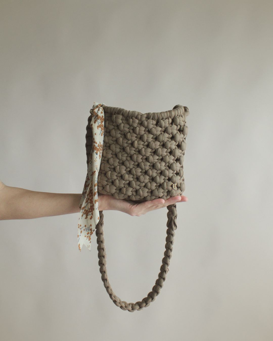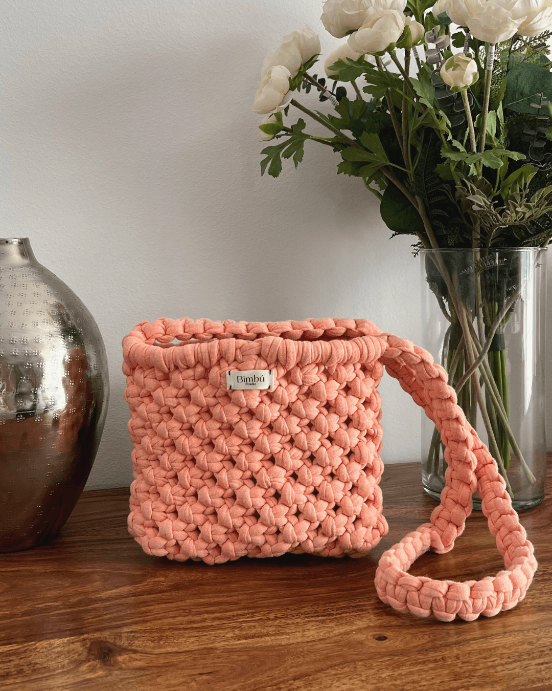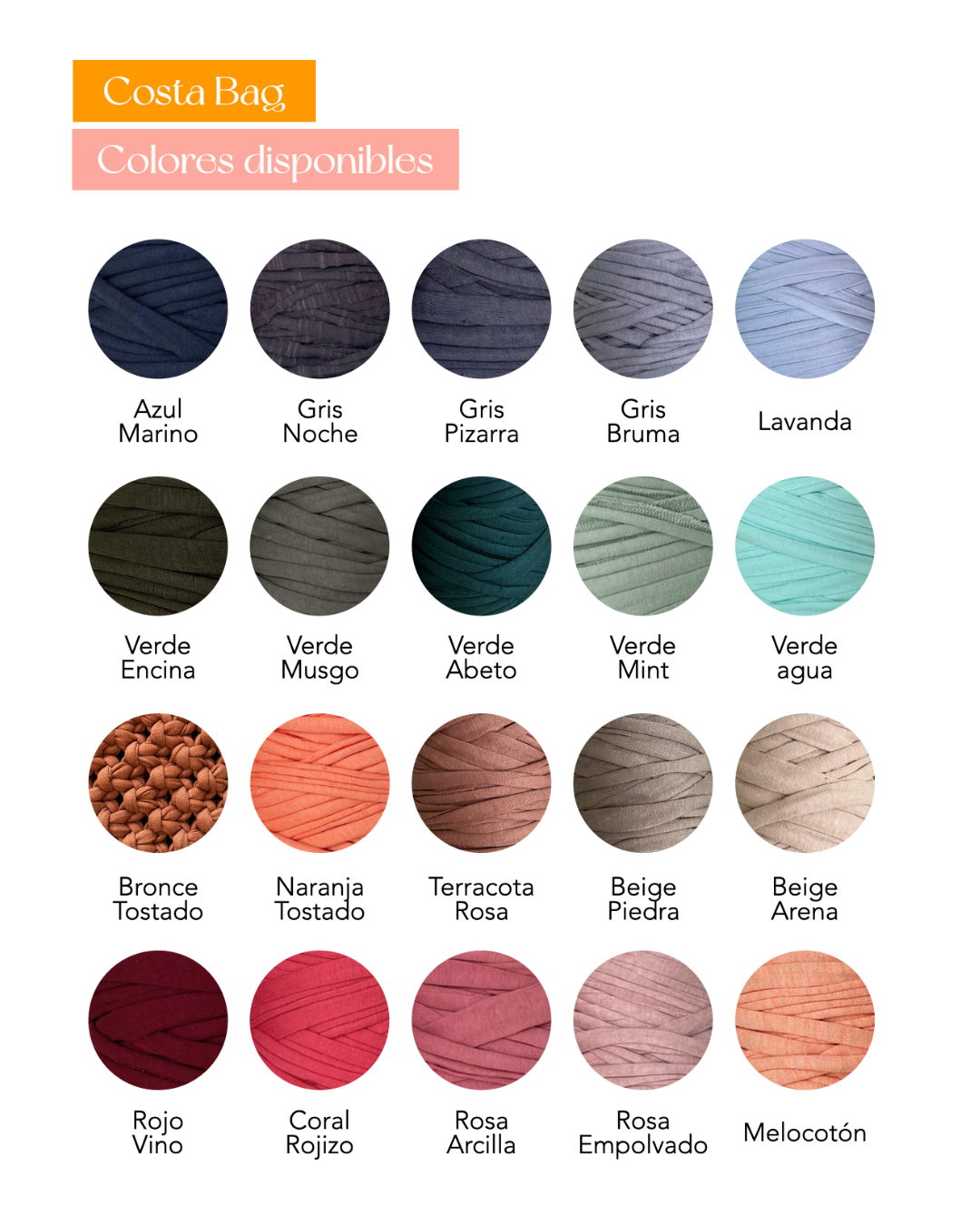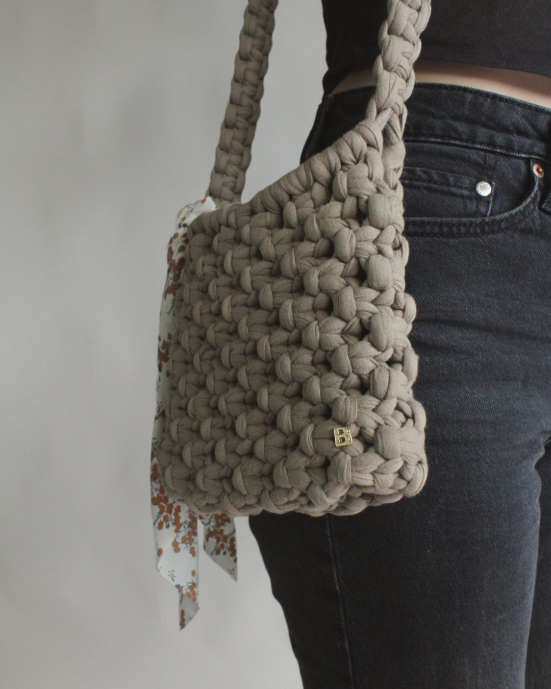 El Costa Bag es un bolso ideal para el día a día. Está hecho a mano con trapillo y nudos de macramé.