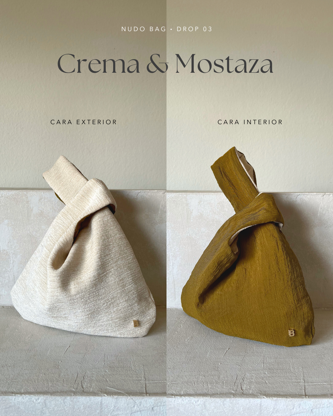 Todos los Nudo Bags son reversibles, por lo que llevan un "forro" interior que puede ser usado a su vez como parte exterior del bolso.