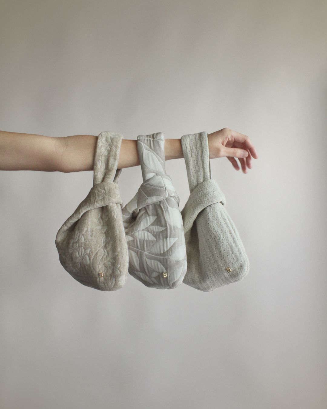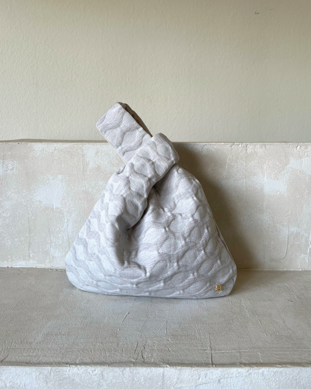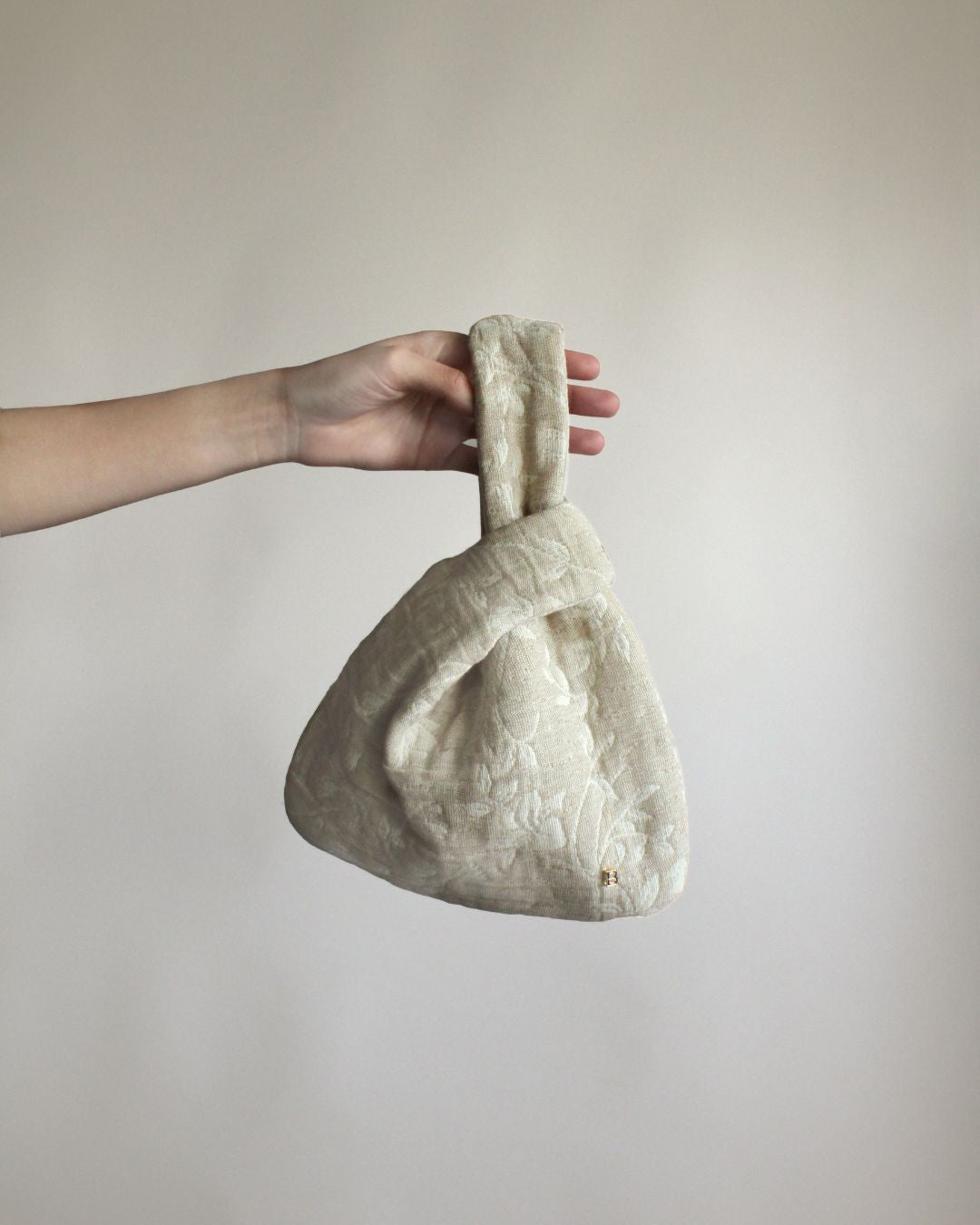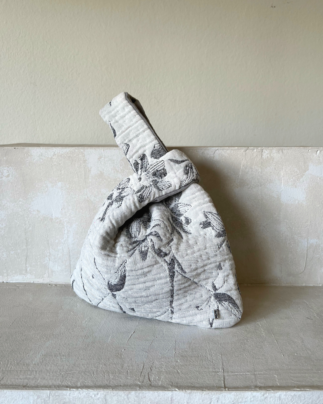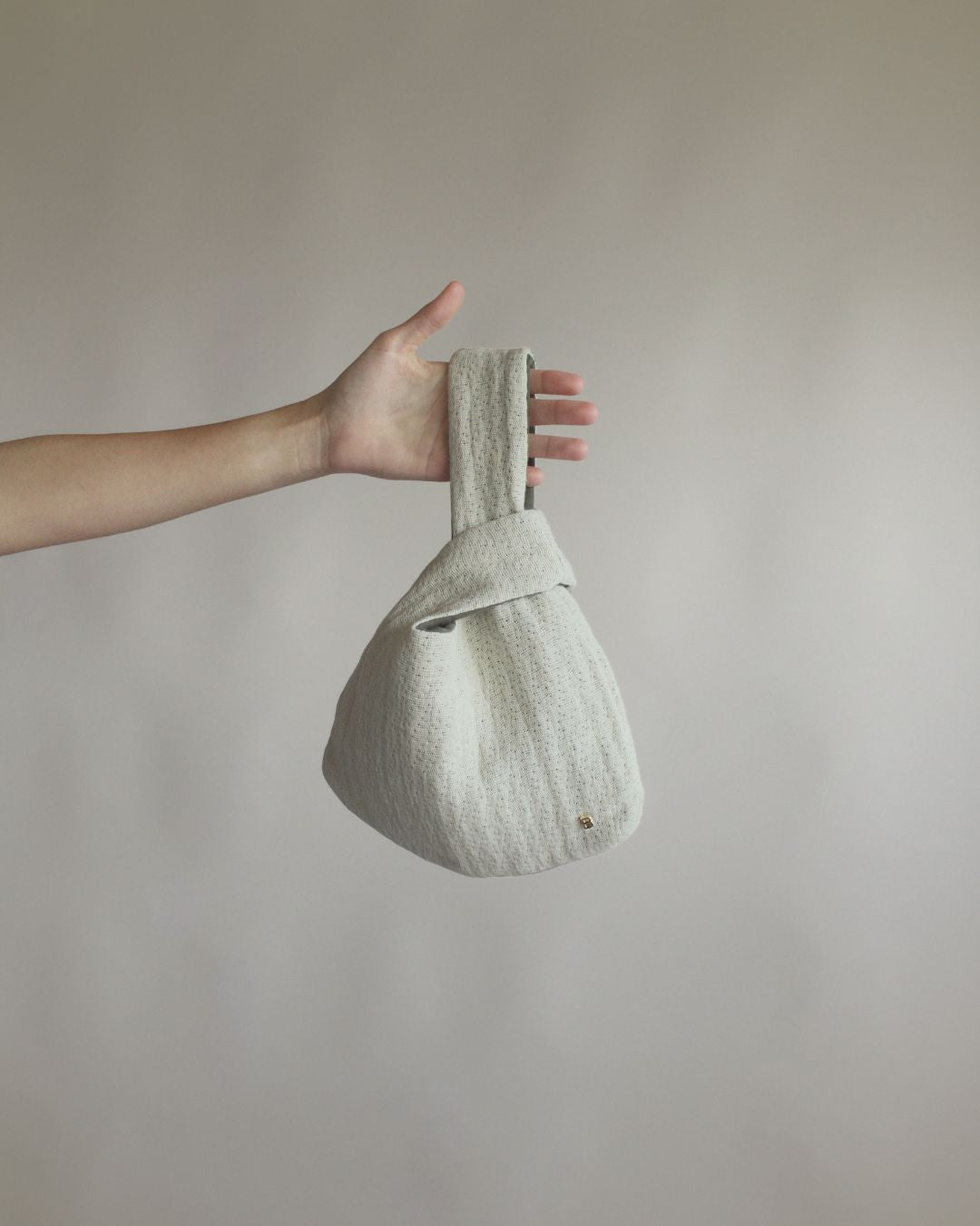 Nuestro Nudo Bag es un bolso de nudo japonés, para llevar colgado en la muñeca, hecho a mano de forma artesanal en nuestro taller.