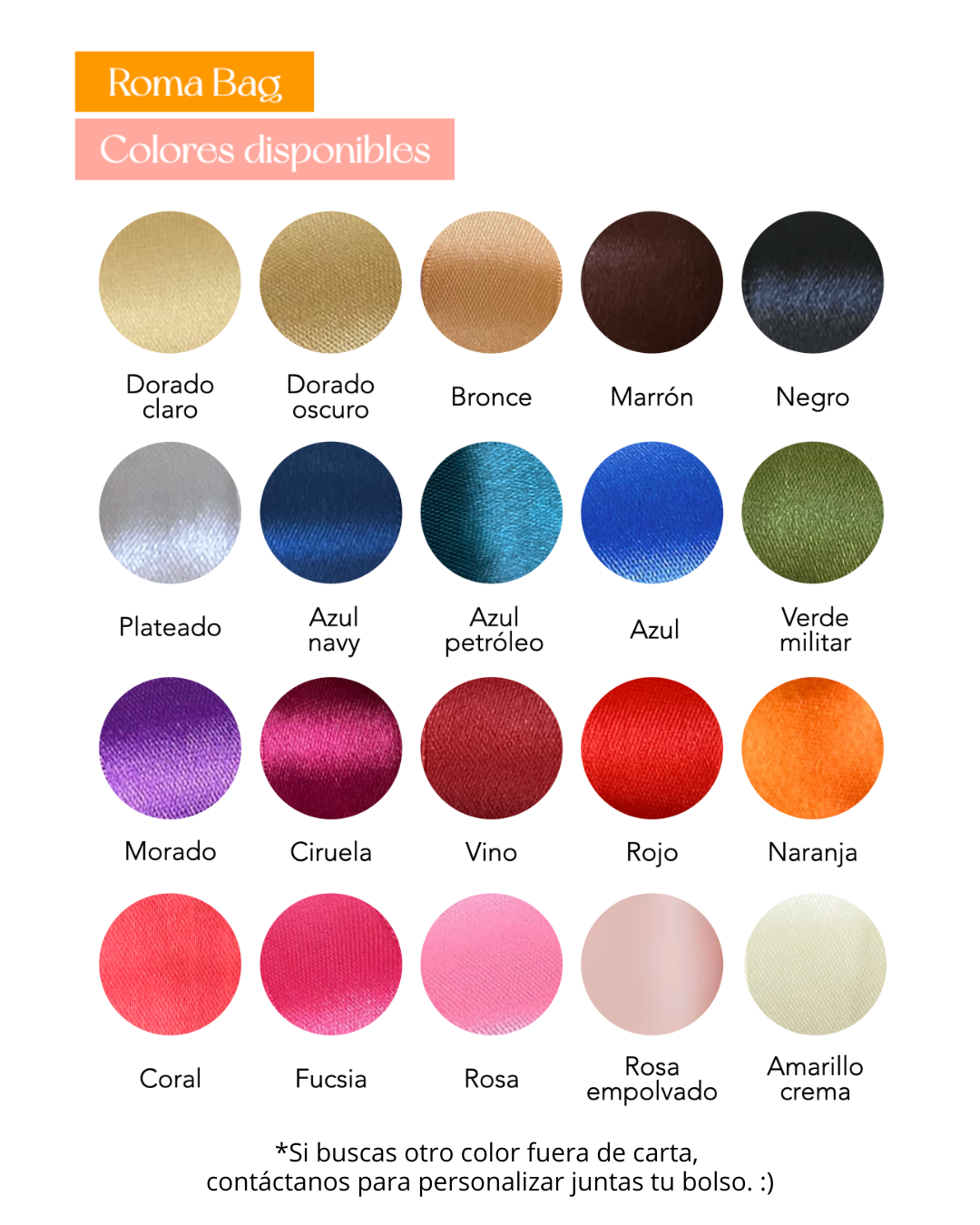 Si buscas otro color fuera de carta, selecciona "Personalizado" y te contactaremos para personalizar juntas tu bolso. :) O, si lo prefieres, también puedes contactarnos escribiendo a hola@bimbustudio.com o por Instagram en @bimbustudio.