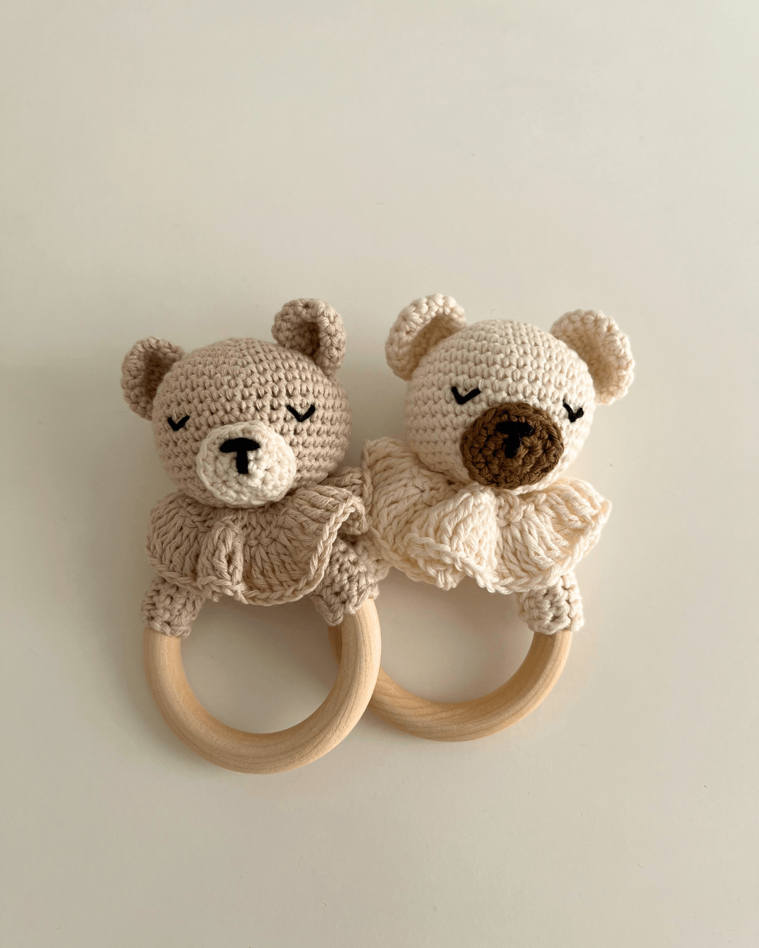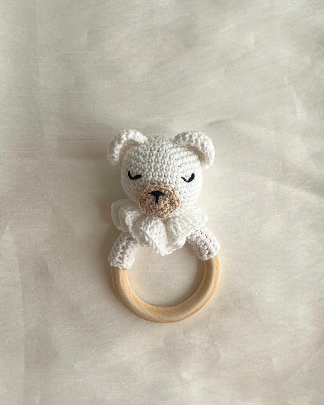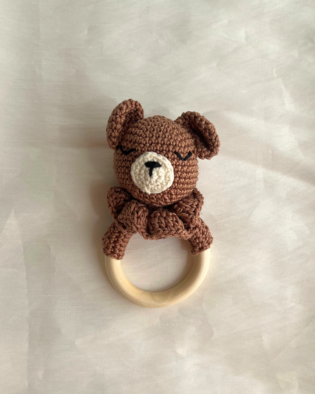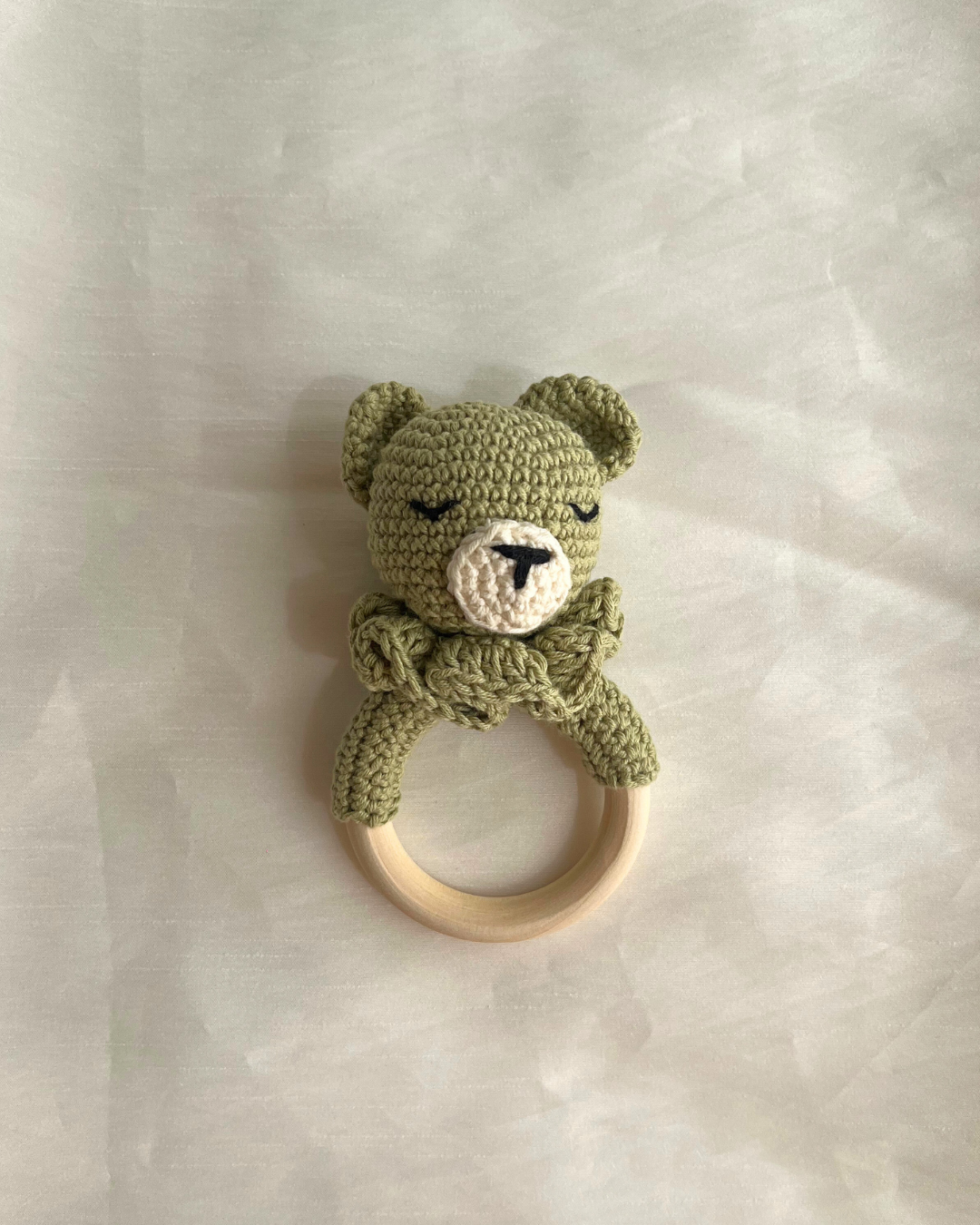 Este sonajero no es apto para la lavadora. Para mantenerlo en buen estado, recomendamos limpiarlo siempre a mano con agua templada y jabón neutro, evitando sumergir la madera durante mucho tiempo.